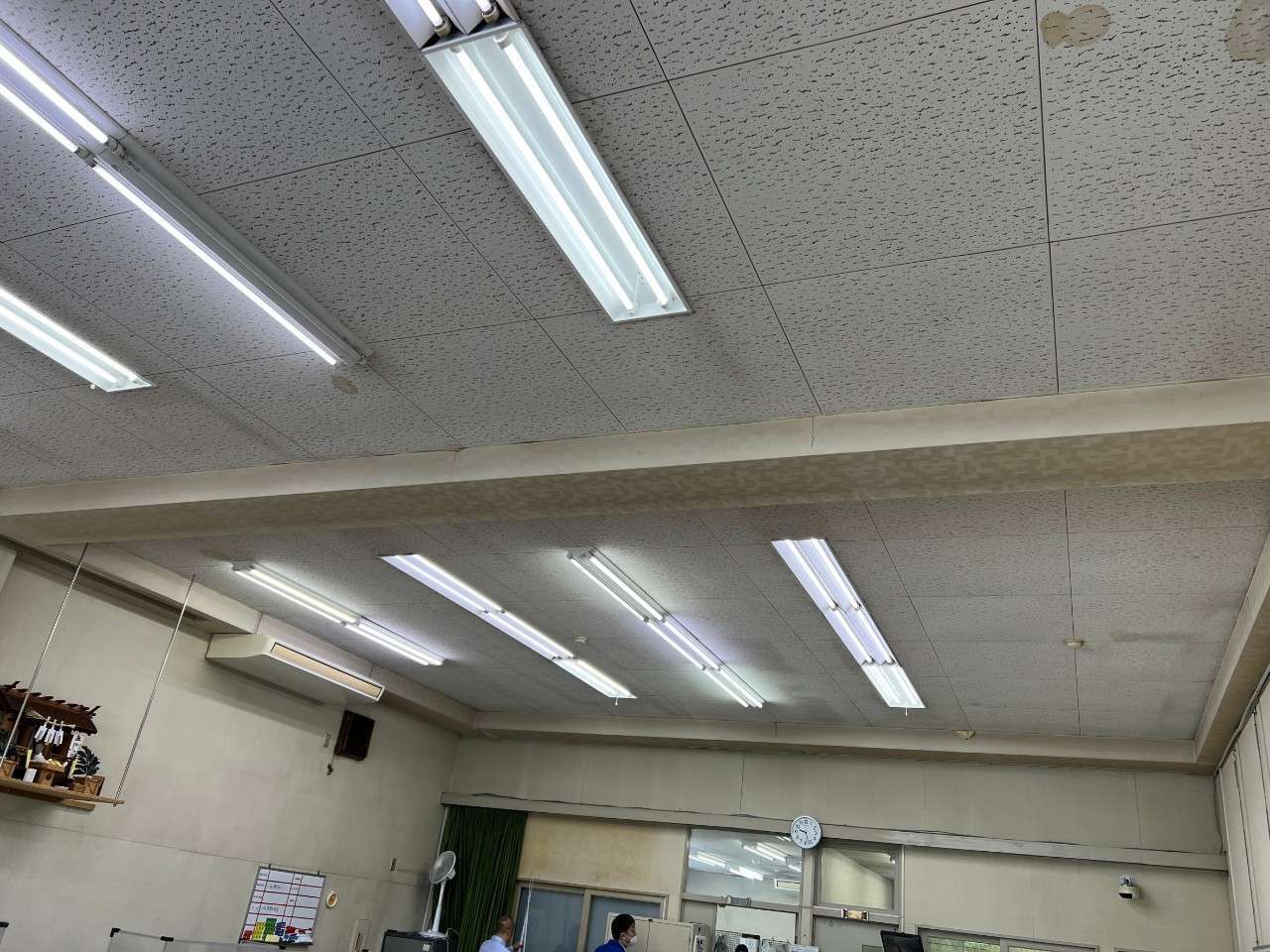 下請け工事です。事務所内部の天井、壁塗装、土日の突貫工事です。